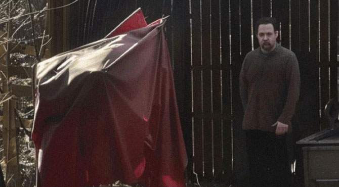 An old bed sheet covered something the size of a coffee table, but taller. With a dramatic flourish, Derek yanked the sheet away.
