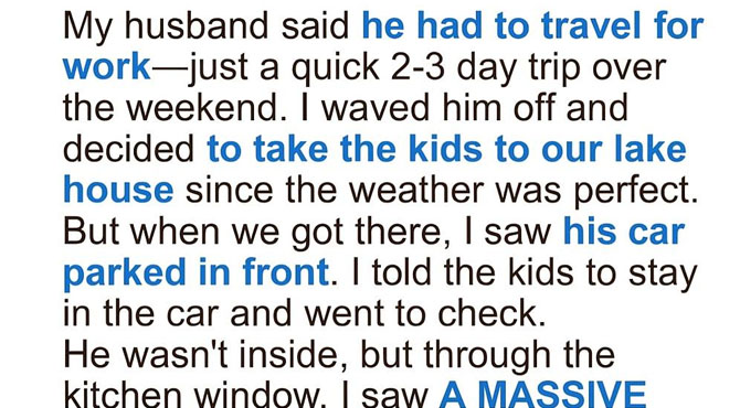 Before I discovered his car at our lake house, my husband claimed to be on a business trip.