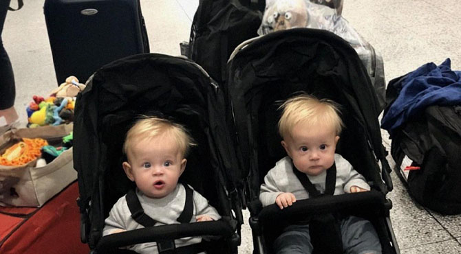 You know that moment when you just know your partner’s about to do something unhinged but your brain won’t let you believe it? That was me, standing at the gate of Terminal C, baby wipes sticking out of my pocket, one twin strapped to my chest, and the other chewing on my sunglasses.