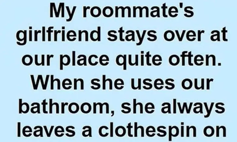 My roommate’s girlfriend stays over at our place quite often. When she uses our bathroom, she always leaves a clothespin on the showerhead. Every single time! I’m hesitant to ask her because we’re not close.