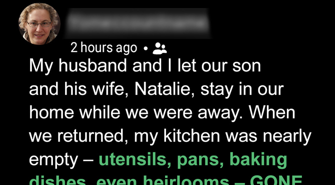 That’s how it felt the second I stepped into my kitchen after two weeks away. My husband and I had taken a much-needed break at our quiet country house—just the two of us, no phones, no fuss. Before we left, we offered our son and his wife, Natalie, a sweet little deal.