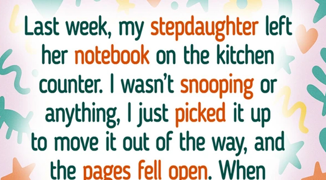 This is going to sound… weird, but I honestly don’t know how else to explain it. Last week, my stepdaughter left her notebook on the kitchen counter. I wasn’t snooping or anything, I just picked it up to move it out of the way and the pages fell open.