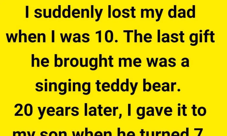 When I was ten, my dad died suddenly. The last thing he gave me was a singing teddy bear — the kind that played a lullaby when you pressed its paw. I carried it everywhere, even to his funeral, clinging to that soft tune like it was his heartbeat. Over the years, the sound faded, but the bear stayed — a small, silent piece of him I couldn’t let go of.