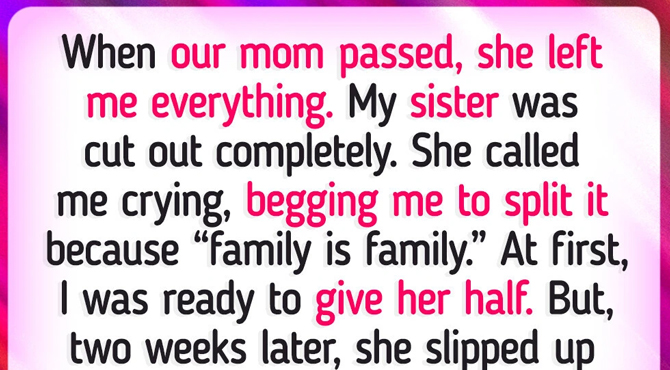 At first, I was ready to give her half. Then, two weeks later, she slipped up in a fight and admitted something: she already got her share years ago. Mom gave her a huge sum privately when she bailed her out of debt. That money? She blew it in less than six months.
