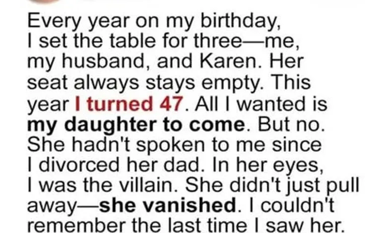 My 47th birthday passed in near silence just three plates on the table, one seat left untouched, a quiet echo of the daughter I hadn’t spoken to in two years.