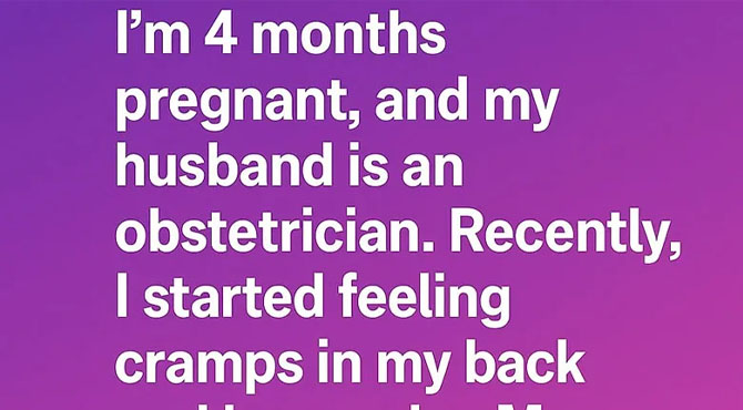 I’m 4 months pregnant, and my husband is an obstetrician. Recently, I started feeling cramps in my back and lower abs. My husband said the pain would go away in a few days, but it didn’t. Four days later, I asked him to take me to the hospital, but he refused because…