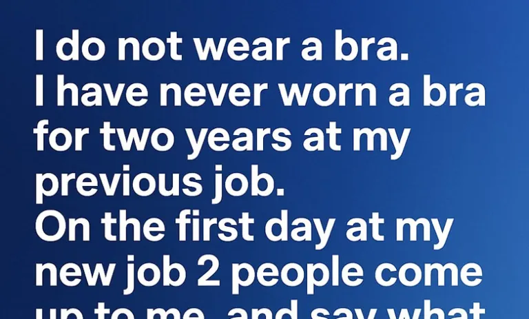 I do not wear a bra. I have never worn a bra for two years at my previous job. On the first day at my new job, two people come up to me and say what I’m wearing is inappropriate and that I should wear a bra to work. Day 2. I do not wear a bra, but I wear a T-shirt and a jacket. That’s when one woman mentioned that…she used to feel insecure about her appearance too, and people often commented on what she wore instead of the work she did. She wasn’t criticizing me—she was warning me. “Some people here are quick to judge,” she said gently. “But don’t let them make you feel small. Just be sure you’re comfortable and professional, and let your work speak louder than their opinions.”
