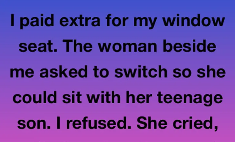 I paid extra for the window — not for luxury, but for survival. For me, that small view of the clouds is an anchor when panic claws at reason. So when a woman asked to switch seats so she could sit beside her son, I said no. She pleaded. People stared. The flight attendant warned me that if I didn’t move, they might have to “escalate.” My heart pounded, but I stayed firm. No one knew that flying terrifies me, that the window is how I breathe through it. I wasn’t being cruel — I was just trying to stay calm enough to stay in the air.