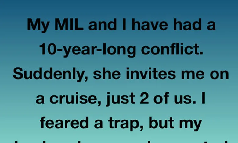 For ten years, my mother-in-law and I clashed, so when she invited me on a cruise—just the two of us—I expected trouble. The first night, a nervous waitress quietly warned me that my MIL had tried to bribe her to spill a drink on me “as a family joke.” The next day, she tried again—this time asking the waitress to slip something into my drink. I took the note she’d written, went straight to ship security, and moved to a different cabin without telling her, determined to finish the trip on my own terms.